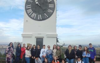 The next destination was the little town of Sremski Karlovci, an important cultural, spiritual and wine region. Here, the students took a stroll through the town with a guide who took them to visit The Orthodox Cathedral of St Nikolai, Clerical High School of St. Arsenije, The Patriarchal Court and the first Serbian secondary school, Karlovci Grammar School. The visit ended by going to the Viewpoint. The participants learnt about the interesting facts connected to the culture of Sremski Karlovci using their skills- collaboration, communication and problem solving skills. They were asked to find an item and answer the question connected to the particular item. Afterwards, we discussed the importance of the trail for local people and its tourist valorisation. In addition they were asked to take a picture and group selfies as a preparation for the following task of making a tourist brochure.